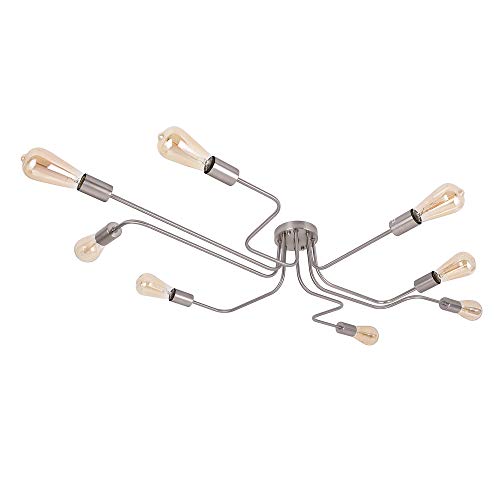 Professional reviews from industry experts OYI Industrial Ceiling Sputnik Chandelier Lighting, 8 Lights Semi Flush Mount Ceiling Light Modern Metal Art Creative Vintage Kitchen Light Fixtures Nickle